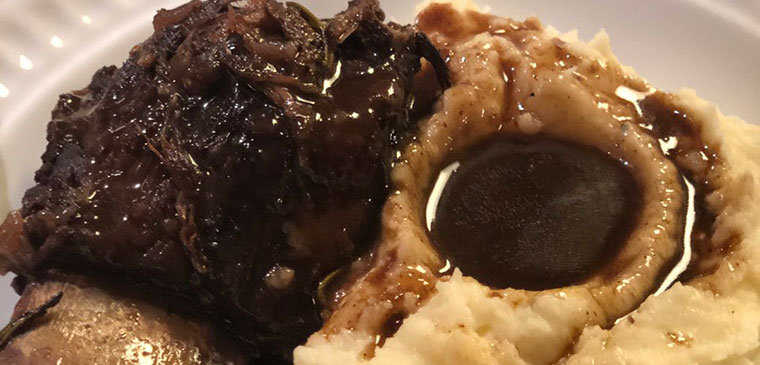4. Place the covered pot into the preheated oven, and cook until the meat is tender and falling off the bones, 3 1/2 to 4 hours.