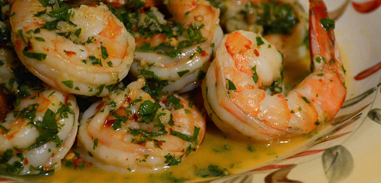 Stuff into slit in shrimps and saute in olive oil turning once when slightly pink.