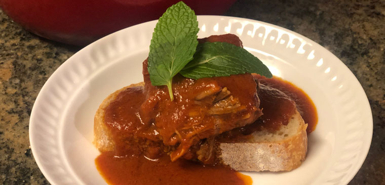 Serve meat separately on a meat platter with (boiled red potatoes optional.) Garnish with a mint sprig!