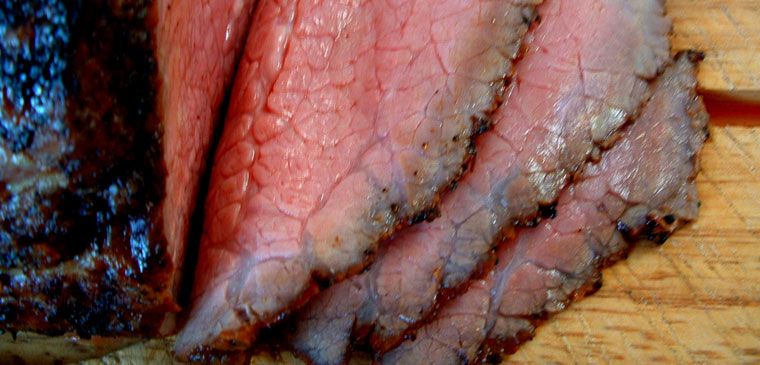 Remove from oven, let sit for 5-10 min. and slice thin.